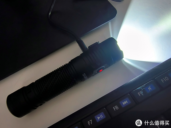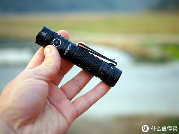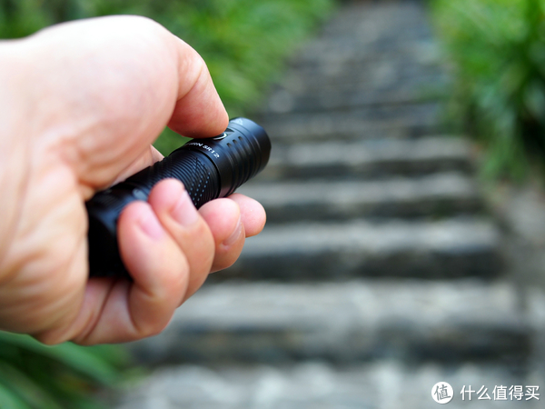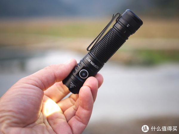 SR12唯一操作开关侧按键主要负责开关机调光换挡,操作起来十分方便。由图片可以看出,手电的侧按位置符合人体工程学,握住手电,大拇指可以轻松放在侧按键上,操作起来不会感觉疲劳。SR12具有档位和无极调光两种操作模式,都可以通过单手操控电子侧按键进行调光操作。