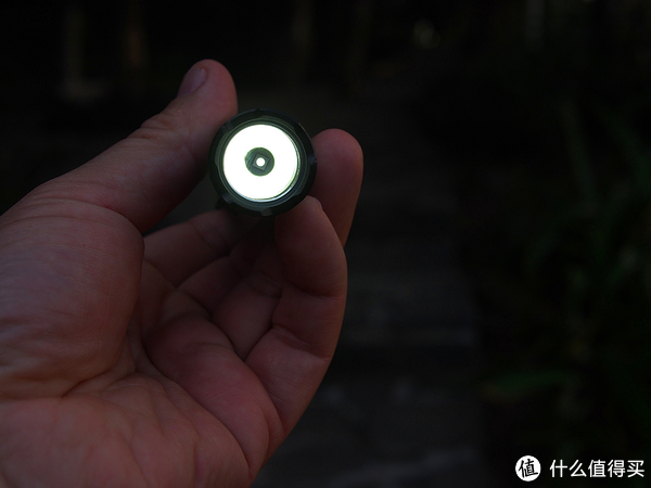 搭载一颗白光SFT-25R灯珠,配合光面灯杯,远射效果也很不错,下图可以看得出光斑圆润,中心点亮度较高。